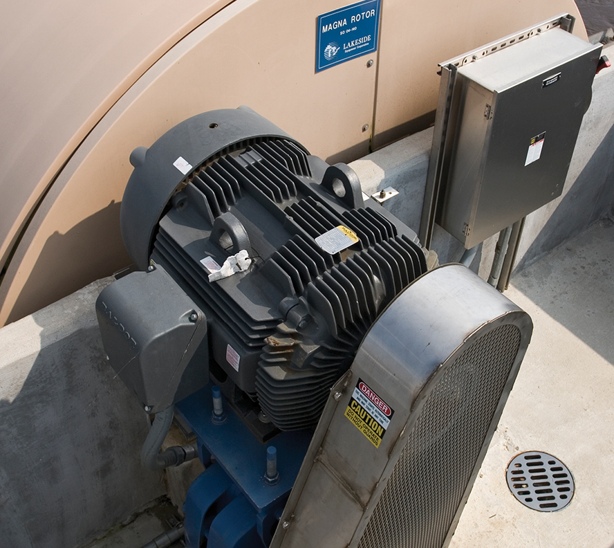 Fiberglass rotor covers are available to contain mist and spray without restricting the performance of the Magna Rotor Aerators. Besides ensuring a clean working environment for the plant operator, the fiberglass covers reduce heat loss during winter operation. The rotor covers include hinged panel sections for easy access to inspect the rotor assembly.