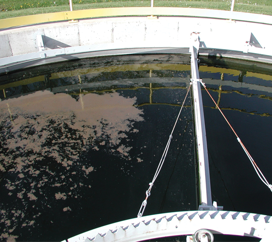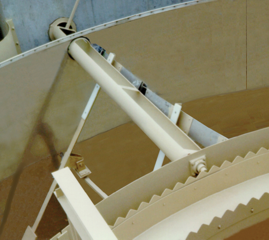 The peripheral-feed design significantly captures floating material in the clarifier’s outer skirt. This process may require full surface skimming to remove material in the main settling area. There are two types of full surface skimmers available: