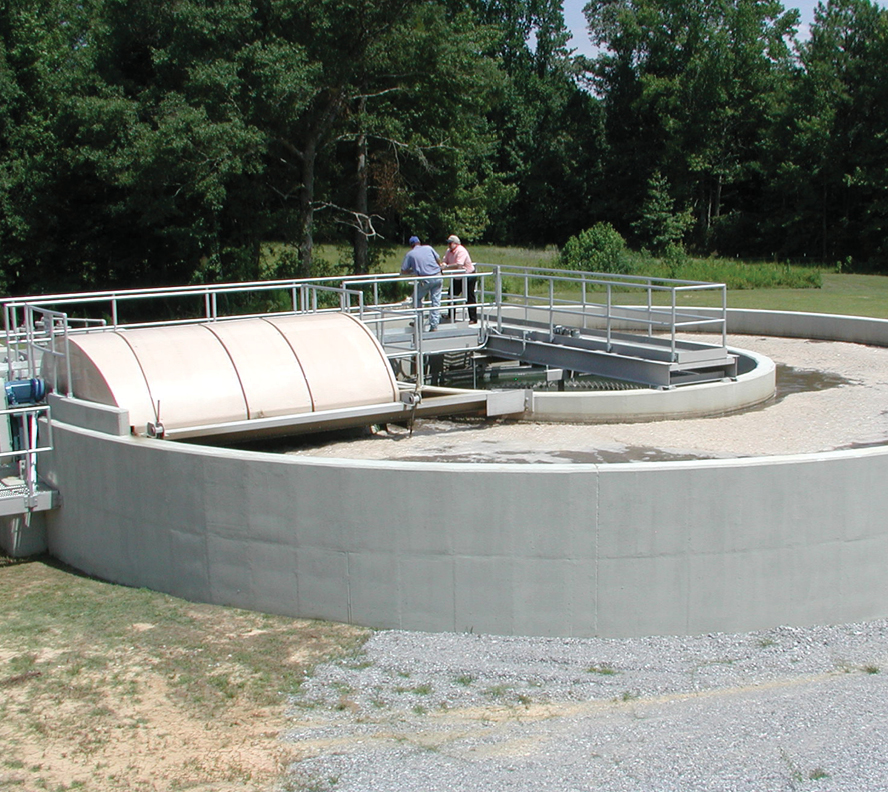 The E.A. Aerotor Plant is constructed in a concentric common wall design that incorporates the Closed Loop Reactor (CLR) Process in the outer loop for extended aeration and mixing, while the inner area has the peripheral-feed Spiraflo Clarifier for final settling. Alternatively, a second outer channel could be added for stand-by capacity, allowing efficient treatment for seasonal flow variations and promoting biological nutrient removal.