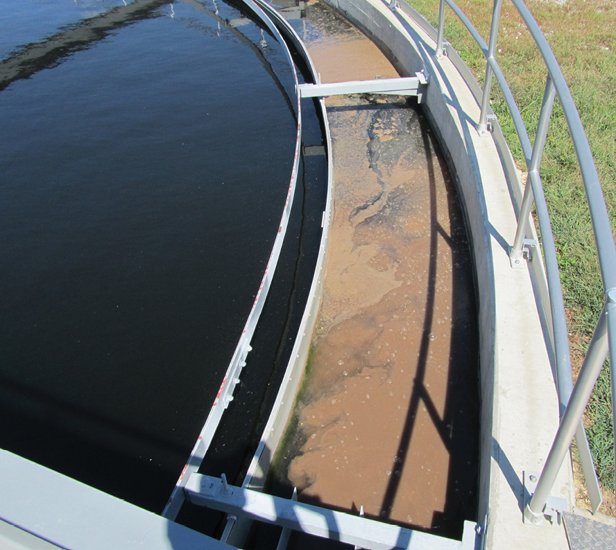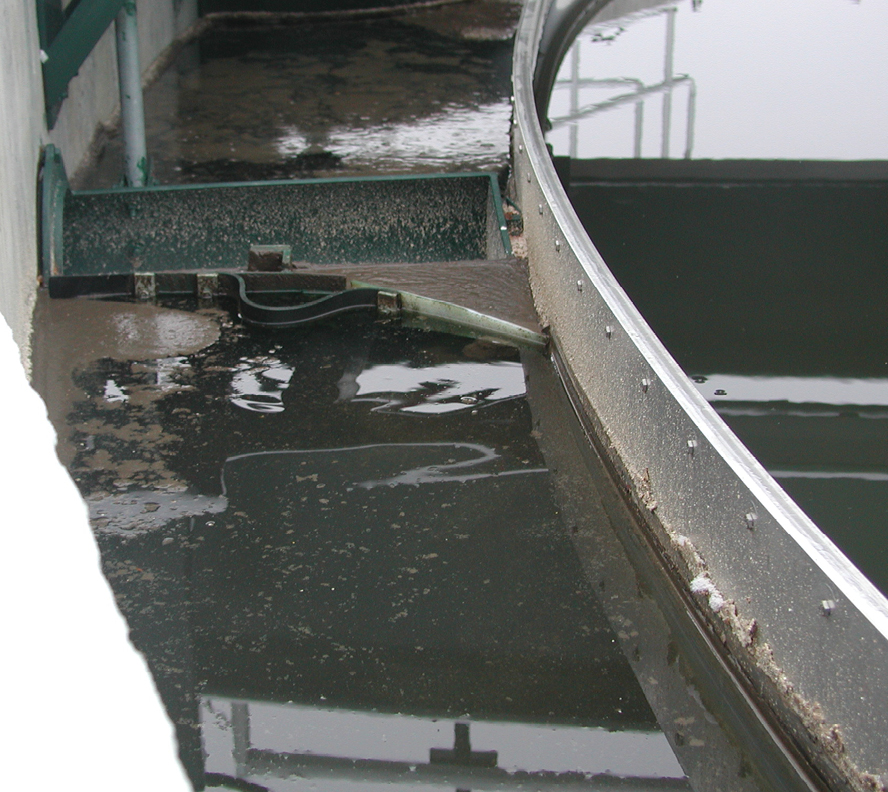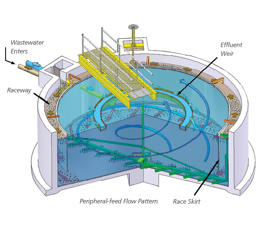 - Wastewater travels inward from the skirt towards the center of the tank which assists in moving sludge to the central hopper