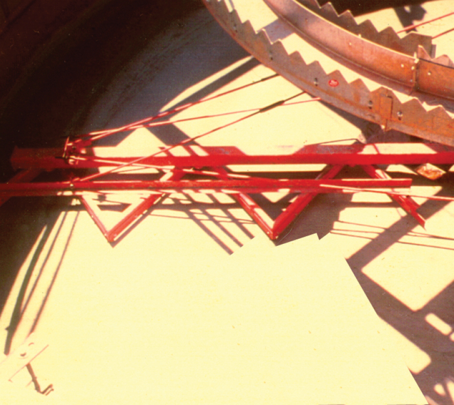 The Spiravac is a peripheral feed clarifier designed for superior solids removal through suction orifices to ensure rapid return of active sludge to the process. The wastewater enters the outer perimeter of the clarifier tank and is directed along the narrow raceway formed by the skirt and the outer wall. This flow pattern dissipates the wastewater’s hydraulic energy as it flows around the raceway, eventually spiraling down underneath the skirt and into the main settling area. The flow travels inward from the skirt towards the center of the tank, coinciding with the direction of the sludge, and the clarified water rises into the centrally located effluent weir trough. The combination of the spiraling flow pattern and the skirt eliminates all possibility of short-circuiting and provides better utilization of the total tank volume for more effective settling.
