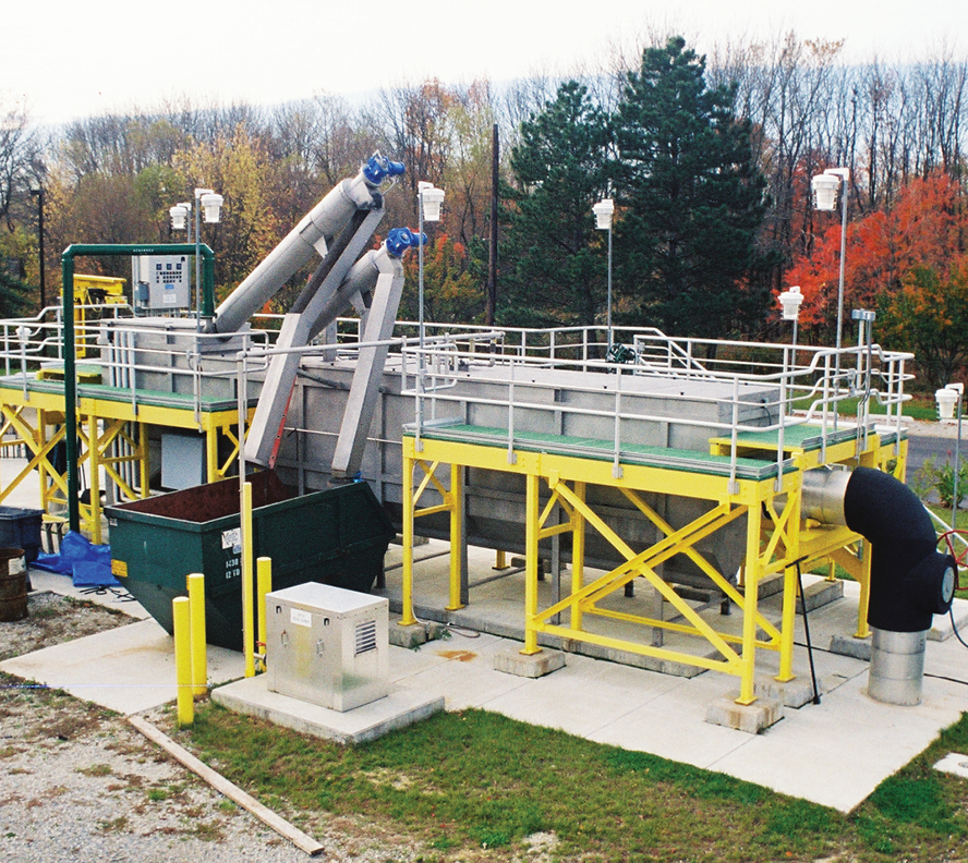 Combining screening and grit removal into one self-contained unit, the Raptor® Complete Plant is a unique system for treating municipal wastewater or septage receiving applications. The fully automated unit is capable of handling peak flow rates up to 4.0 mgd. It is supplied in a pre-engineered stainless steel tank and equipped with the Raptor® Screening product line (screening, washing, compacting, and dewatering), plus transport and dewatering screws for grit removal. The grit chamber can also be equipped with an optional grease trap to remove excess grease, either manually or by a motorized skimmer mechanism.